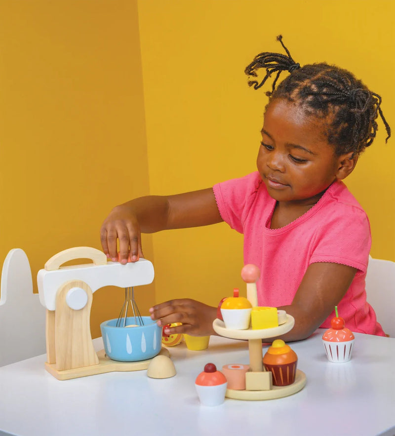 Time for tea! This charming wooden cupcake stand is the perfect centerpiece for pretend tea parties and sweet make-believe moments. Little hosts will love arranging and serving their colorful treats.